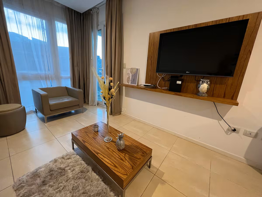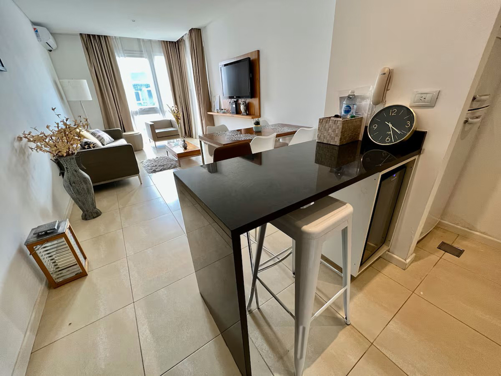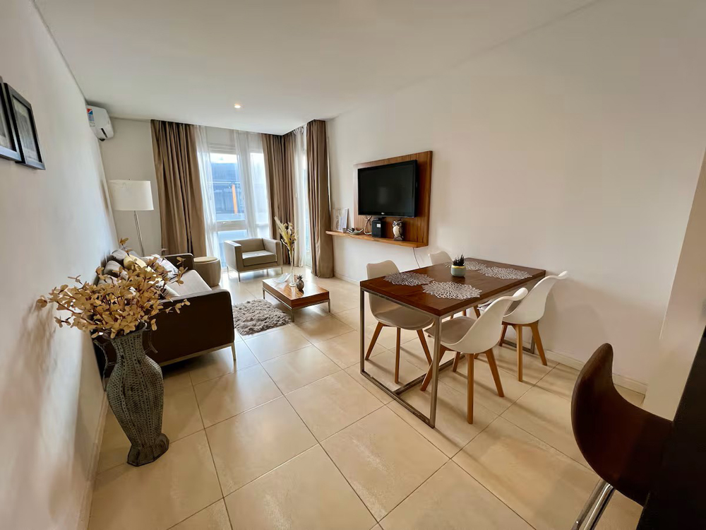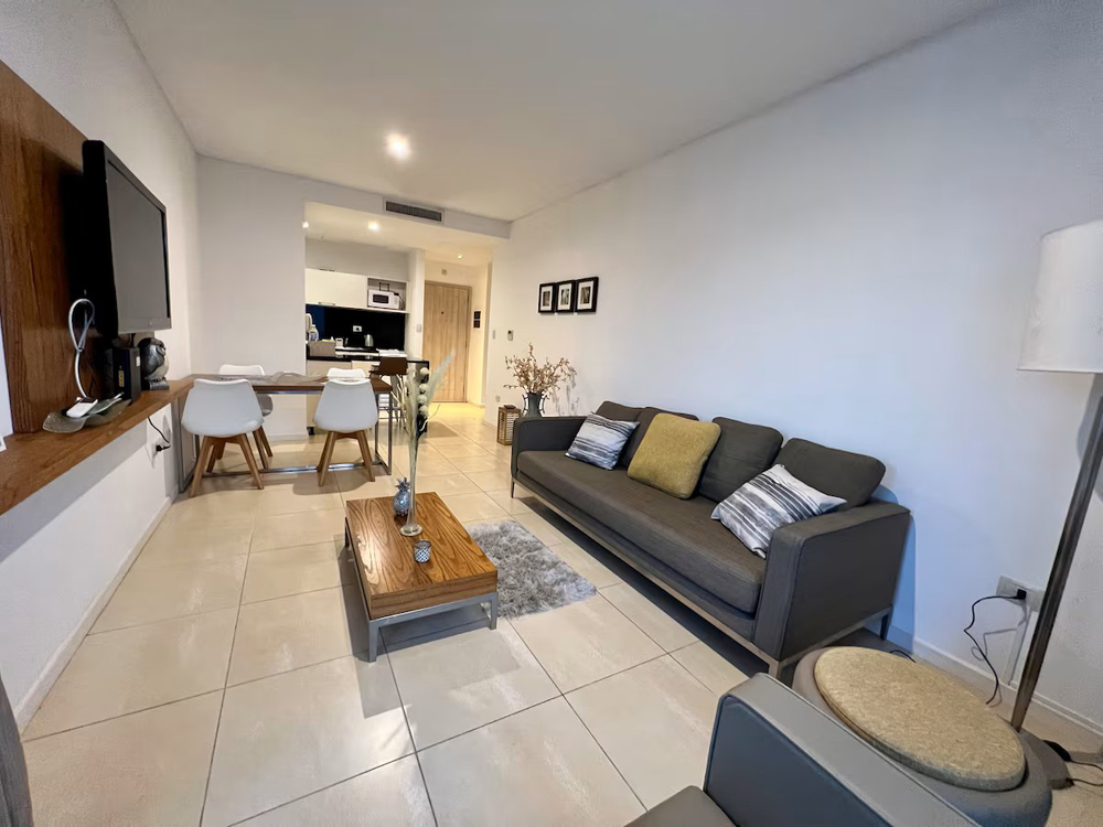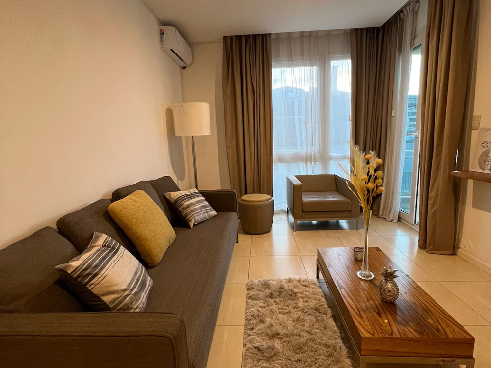 dos ambientes | cocina | comedor | living con sofá cama | balcón | dormitorio | baño completo | toilette | wifi | vista a la bahía | cochera privada
