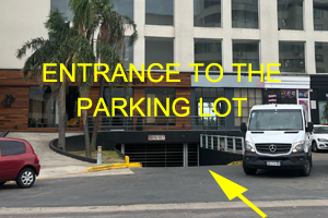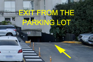 To enter the private parking lot, go to the entrance shown in the photo, and you can open the gate using the remote control. Go to the garage with the assigned number.