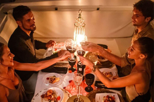 Navegaremos por el Río Lujan, Vinculación, y fondearemos en el Río San Antonio. Tenemos como opción, disfrutar de saxo en vivo y una exquisita comida y vinos a elección, atendidos por un mozo y camarera que estarán en cada detalle, para que pasen un momento mágico.